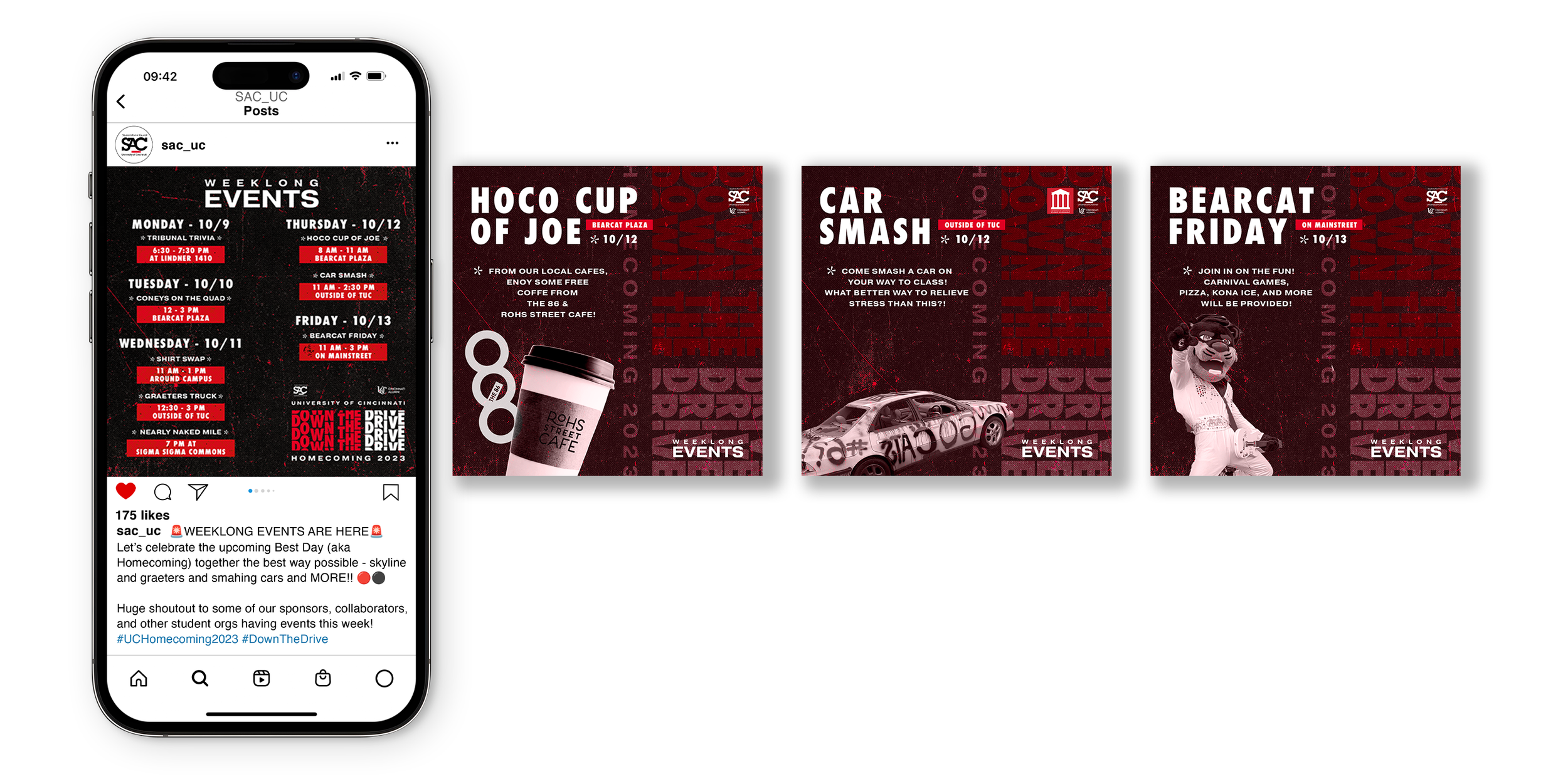 Visual element to reveal the Homecoming theme. Emulating the Bearcat Spirit and welcoming the Alumni back to the University!